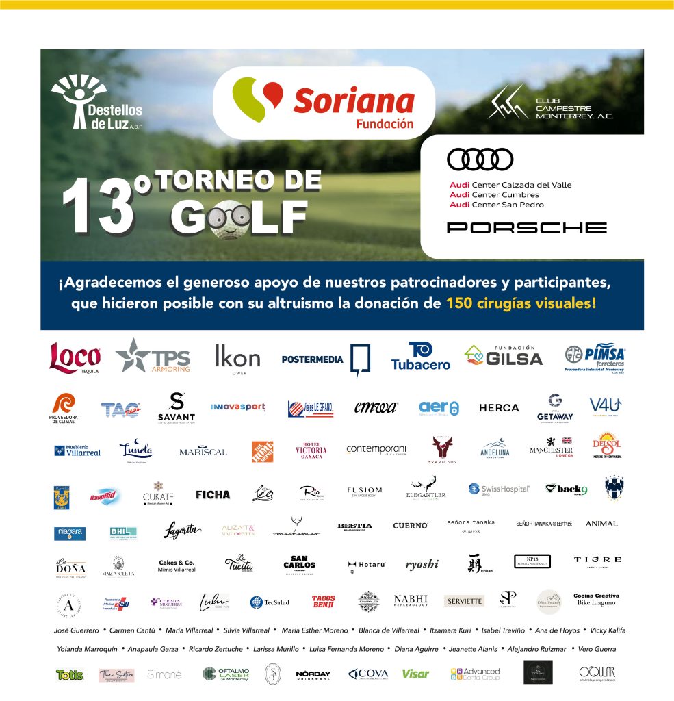 En el mes de noviembre celebramos con gran éxito nuestro 13º Torneo de Golf en las instalaciones del Club Campestre, contando con la entusiasta participación de 138 jugadores que se sumaron con generosidad y compromiso a nuestra causa.
