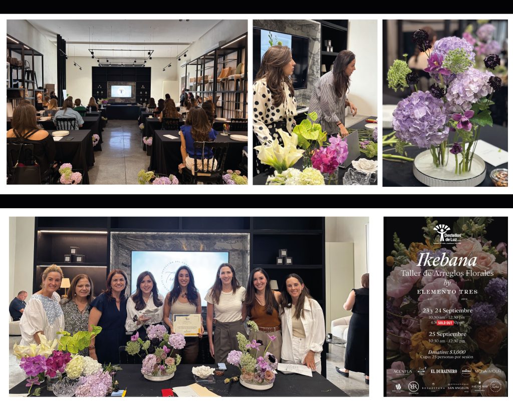 Los días 23, 24 y 25 de septiembre, se llevó a cabo el taller de flores “Ikebana”, impartido por Elemento Tres, un espacio que se convirtió en mucho más que una experiencia creativa. Gracias a la participación entusiasta de las asistentes y al apoyo de nuestros patrocinadores, logramos recaudar fondos para donar 24 cirugías visuales a personas que tanto lo necesitan.